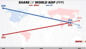 While the outlines of our common geopolitical future are becoming clearer, what impact will it have on humanity’s ability to solve its many problems? China and Russia are leading a growing global turn away from a US controlled world economy.[1] Trade in local currencies is expanding and the dollar’s proportion of international trade is quickly diminishing.[2] Loans by China increase as those by the IMF and World Bank decrease.[3] The ability of the West to control political events in Africa, Asia, India, the Middle East, and Latin America is weakening.[4] Sanctions on Russia and China, attempts to both punish them and prevent their rise, have instead increased their autonomy, resilience, strengthened their economies, and reduced their vulnerability to foreign manipulation.[5] Russia has succeeded in bleeding the EU and US white in Ukraine, with neither capable of continuing to send significant amounts of weapons.[6] NATO countries show no prospect of being able to counter Russia militarily, due to de-industrialization that grows worse every year.[7] Organizations like BRICS, the SCO, and the EAEU are expanding rapidly, uniting and integrating the global majority.[8] Manifested politically as the struggle between Western liberalism and financial capitalism, on the one hand, and socialism/communism on the other, one might suspect that Marx would be pleased with the current turn in the fortunes of the world.